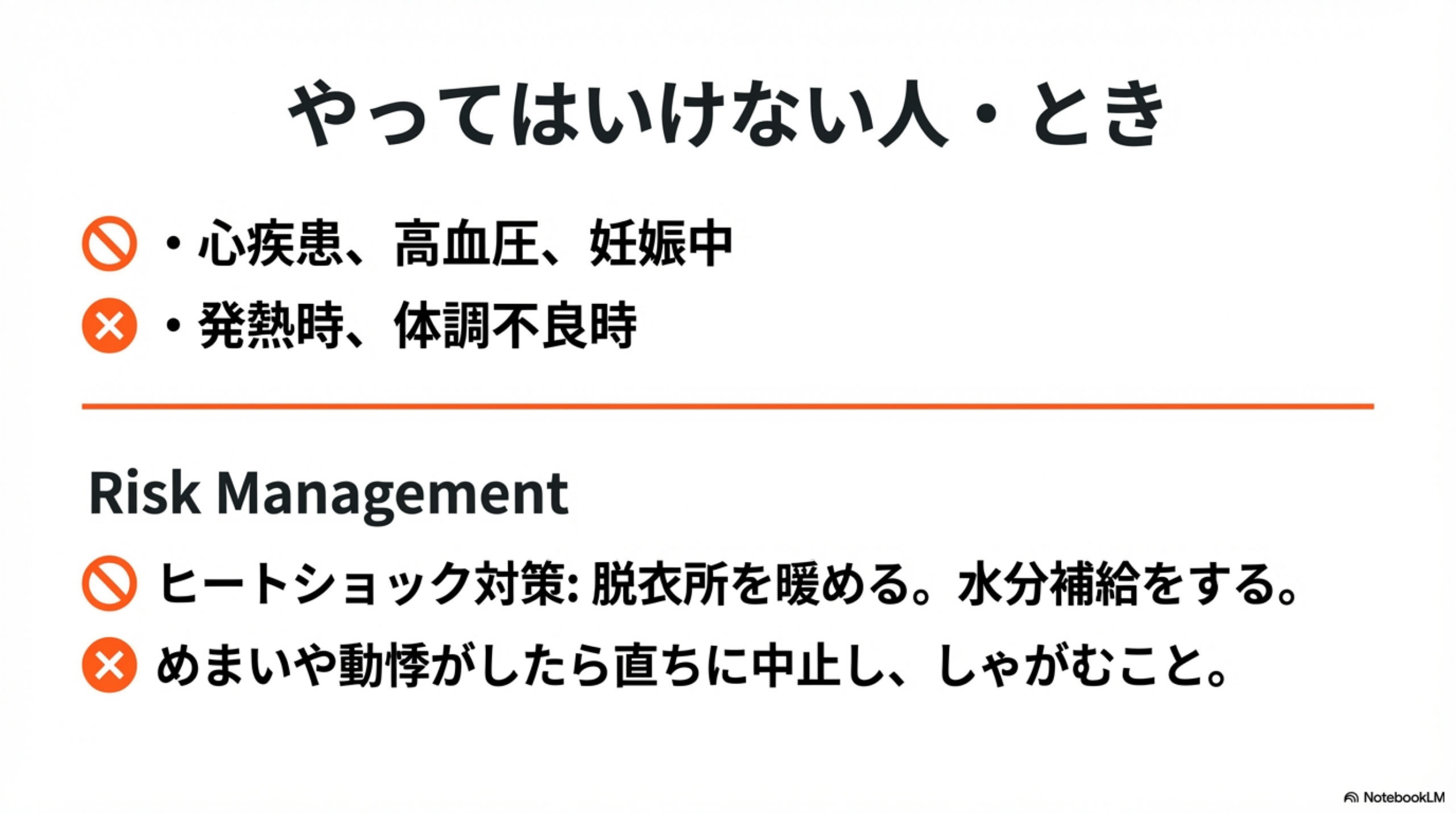• 温水から始めて徐々に水温を下げる(いきなり冷水を浴びない)