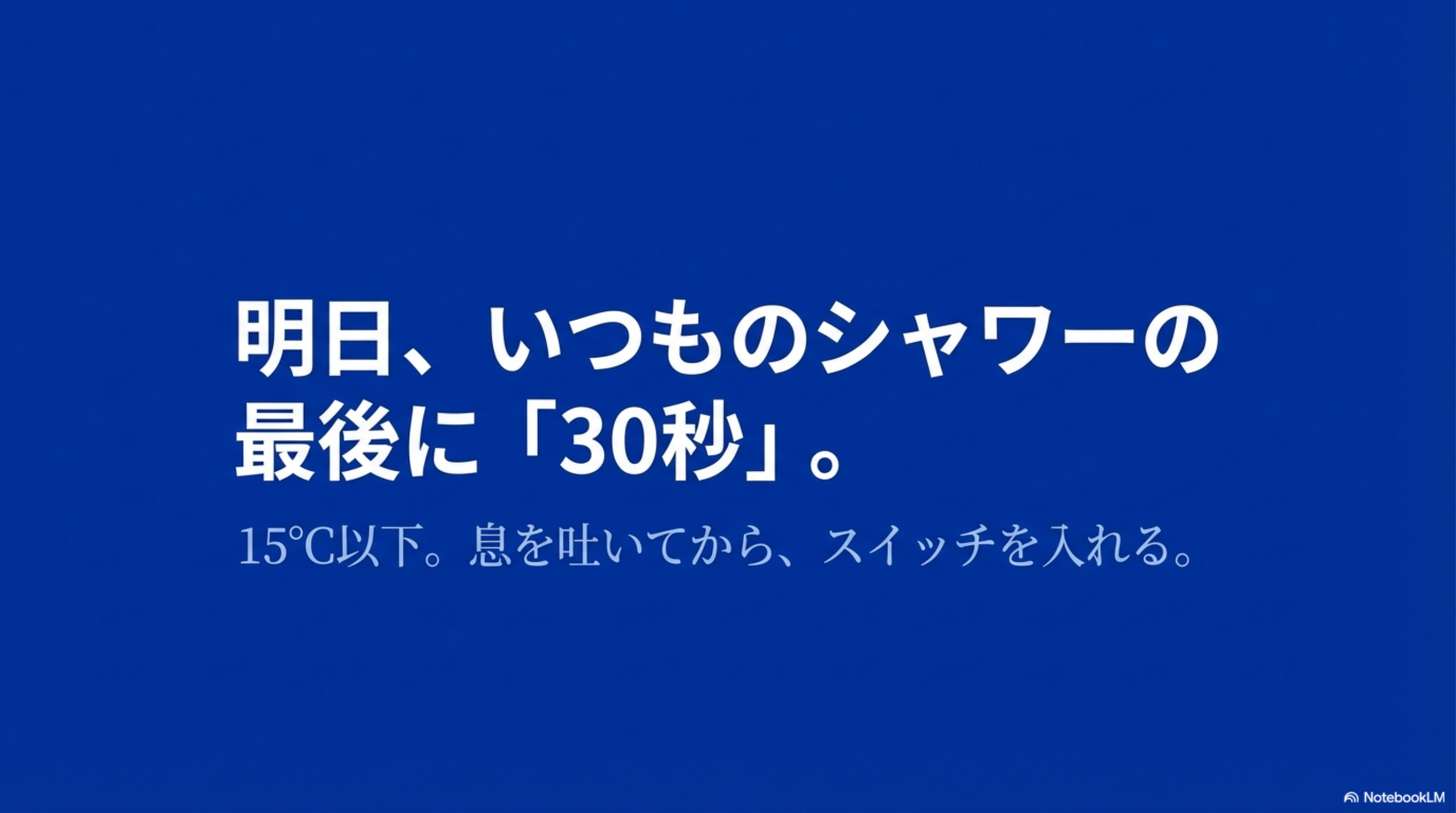 まずは明日の温水シャワーの最後に、30秒だけ冷水に切り替えることから始めてみてください。