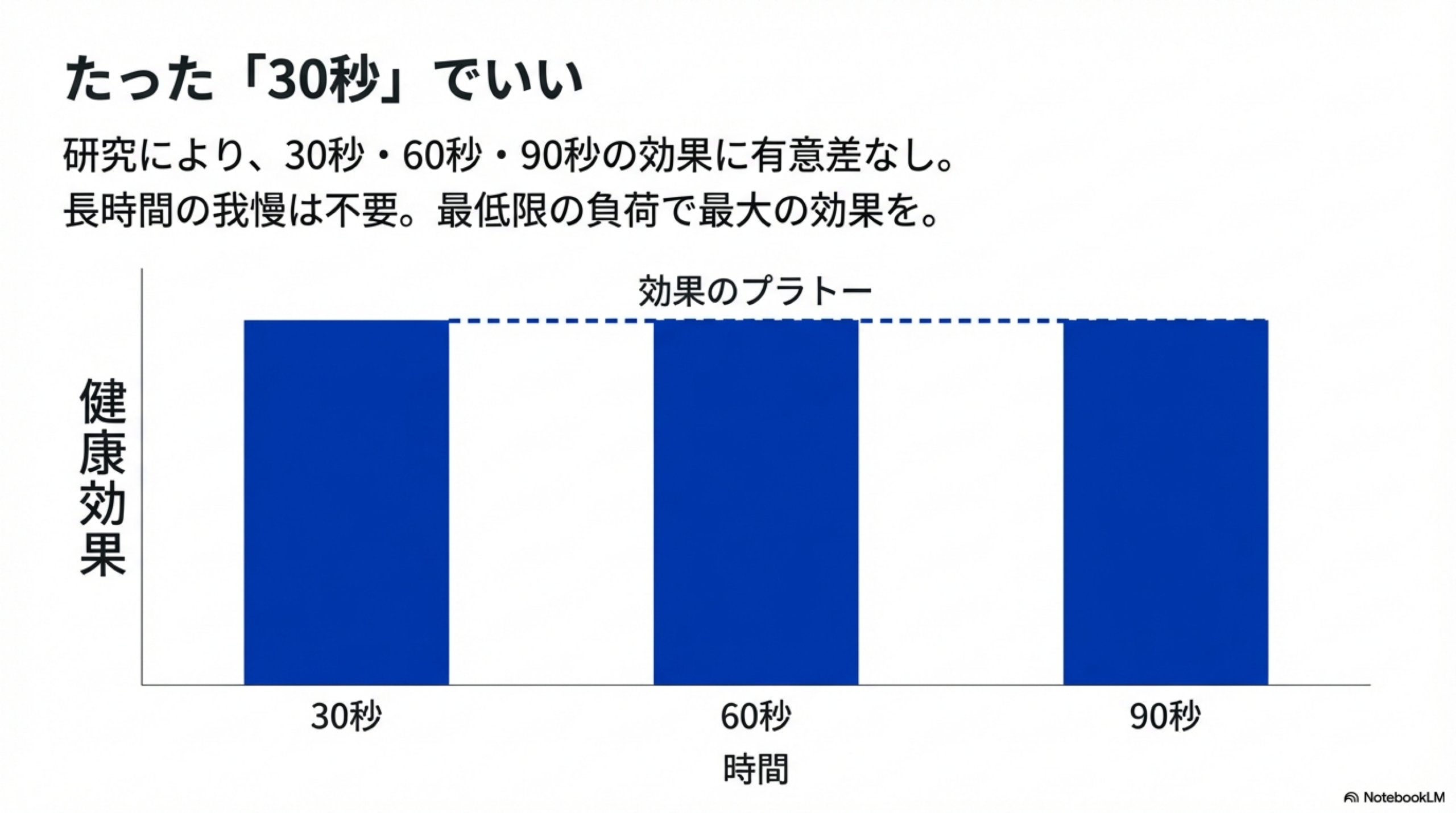 ポイントは、たった30秒で90秒と同じ効果が得られるという研究結果。正しい方法さえ知れば、ハードルは想像よりずっと低いはずです。