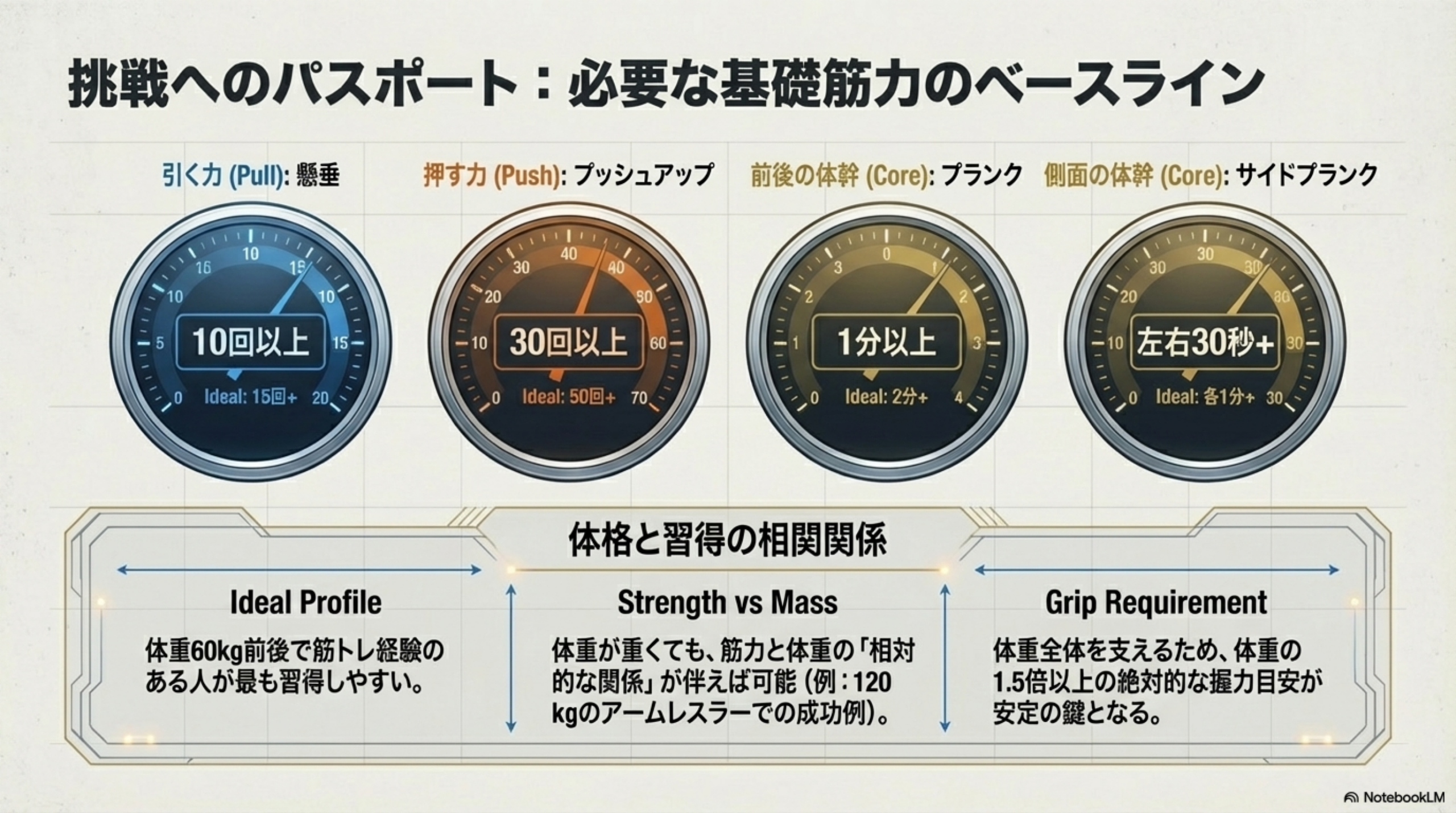 挑戦前に必要な基礎筋力の目安