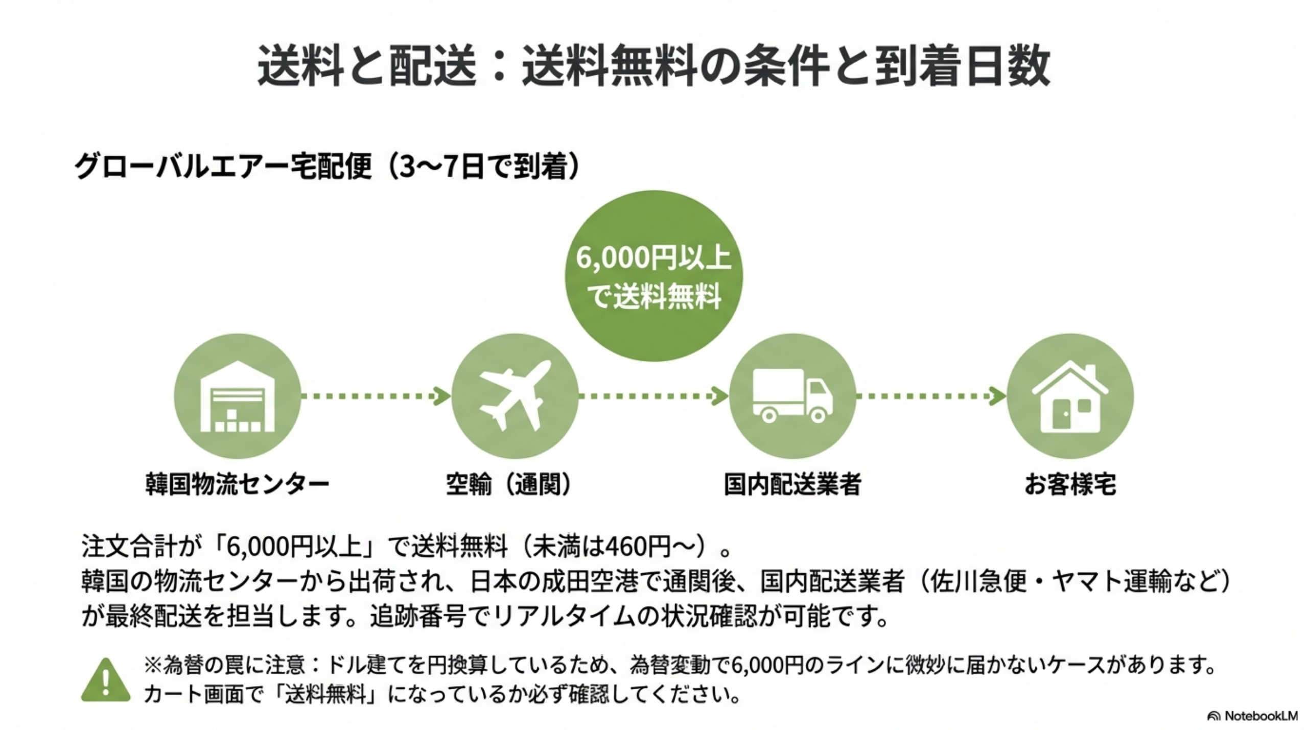 日本向けの注文は、主に韓国倉庫から発送されます。