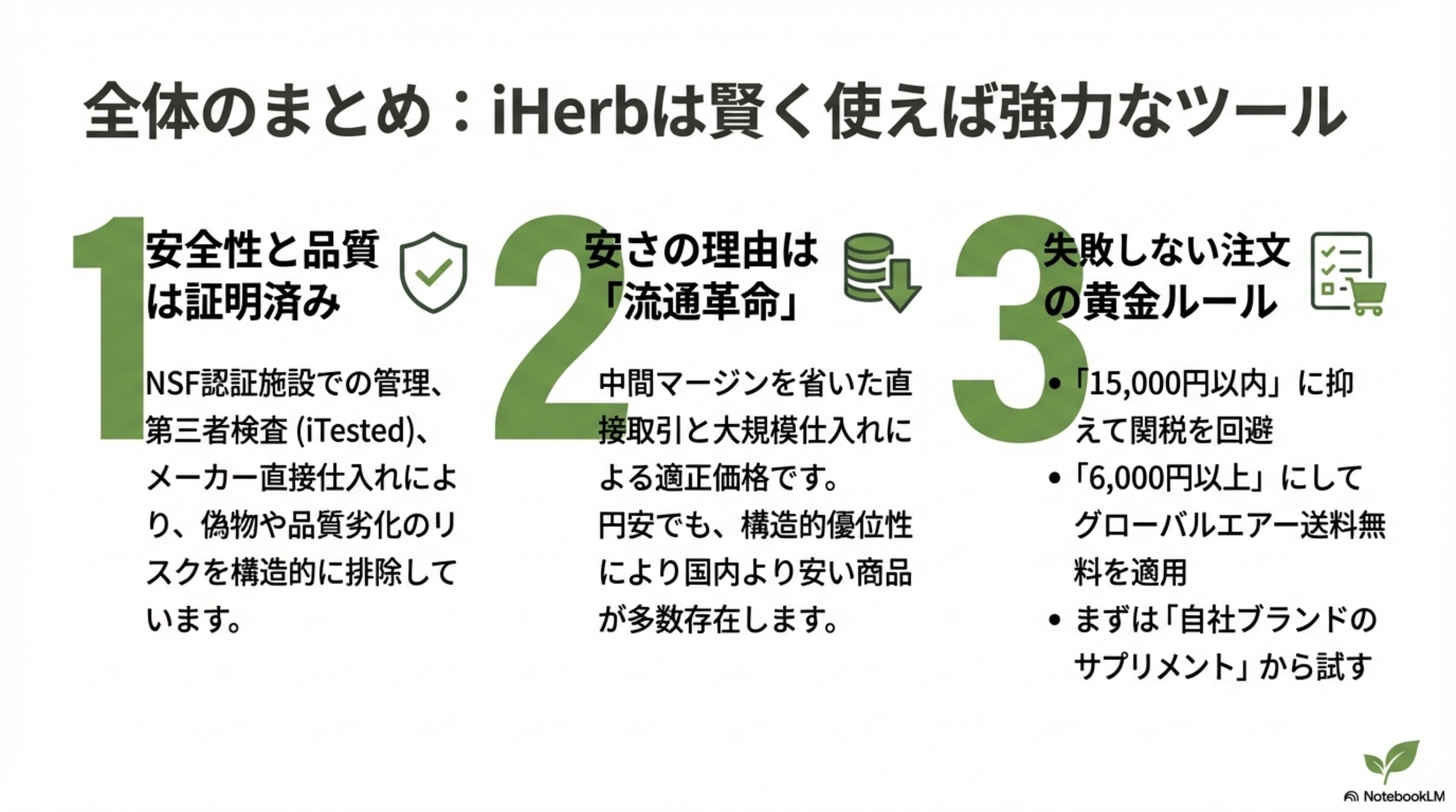 本記事を読むことで、漠然とした「怪しさ」の正体が論理的に解消され、安全かつ最安値で高品質なサプリやオーガニック製品を手に入れる方法が分かります。賢い消費者が知っている「iHerbの本当の価値」を、ぜひここで確認してください。