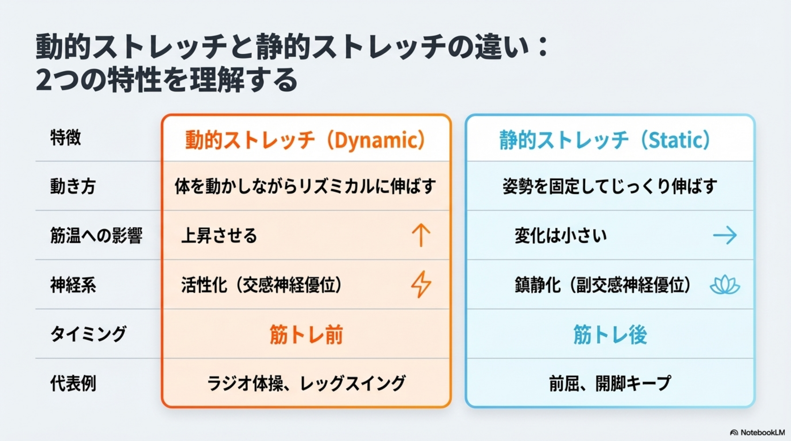 筋トレの効果を最大化するには、2種類のストレッチの違いを理解することが重要です。