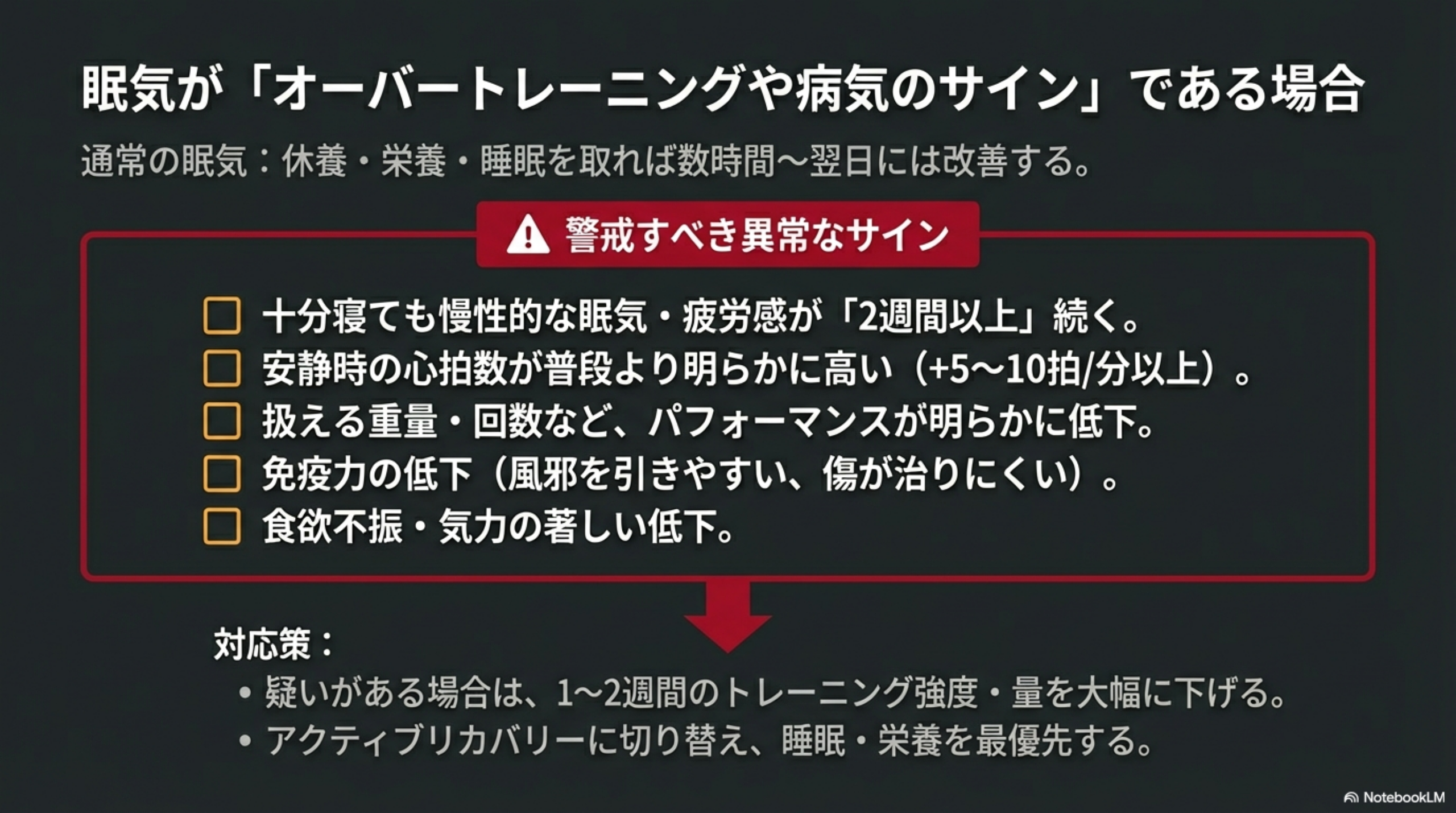 眠気が「オーバートレーニングや病気のサイン」である場合
