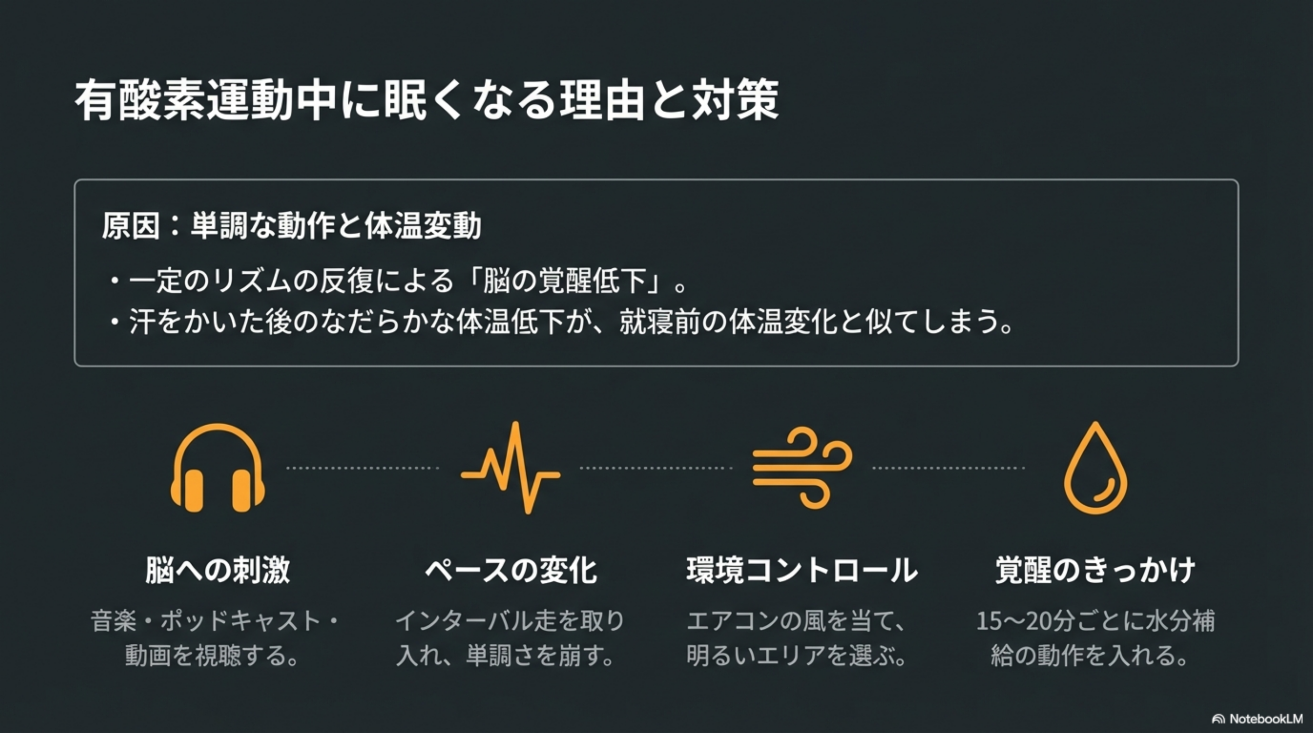 🏃 有酸素運動中の眠気対策:
