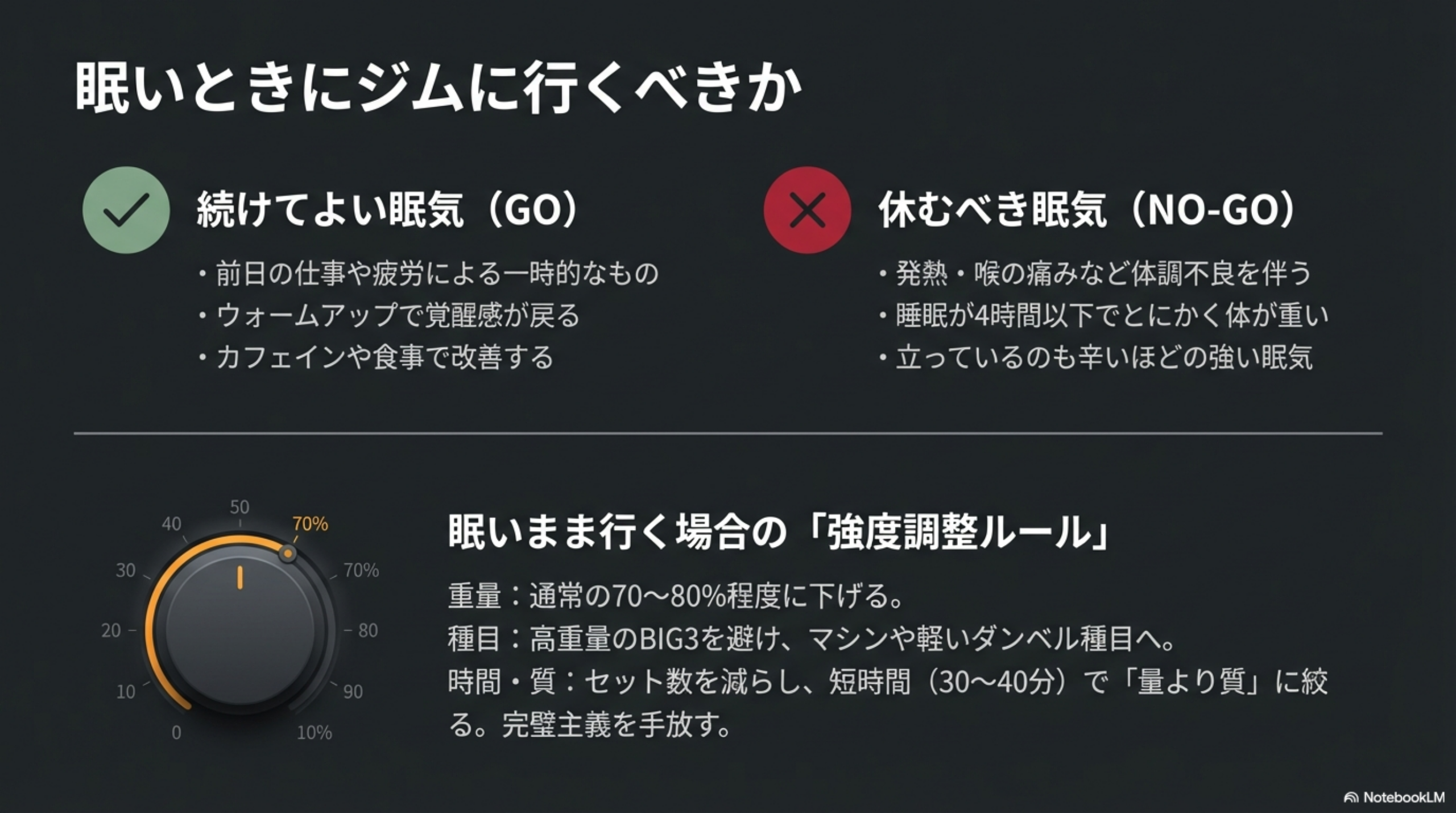 💡 眠い日のトレーニング調整の目安: