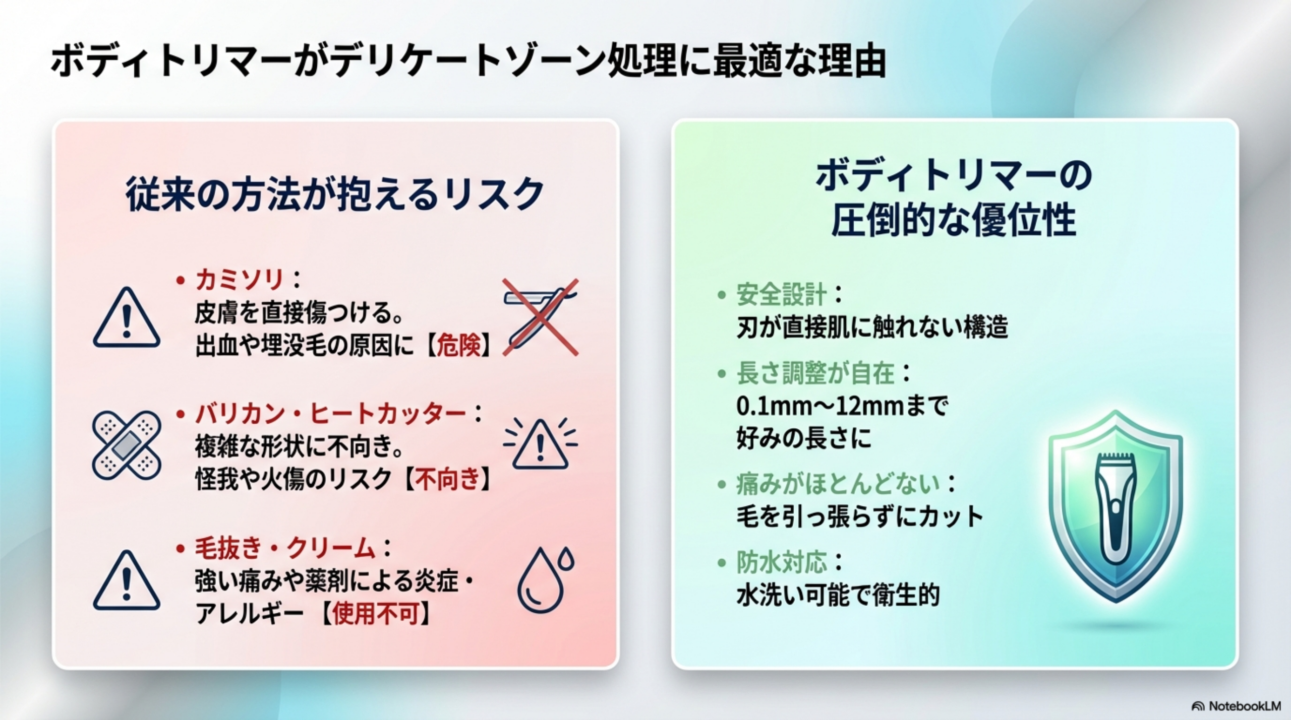 ボディトリマーがこれらの問題を解決できる理由は、その設計思想にあります。