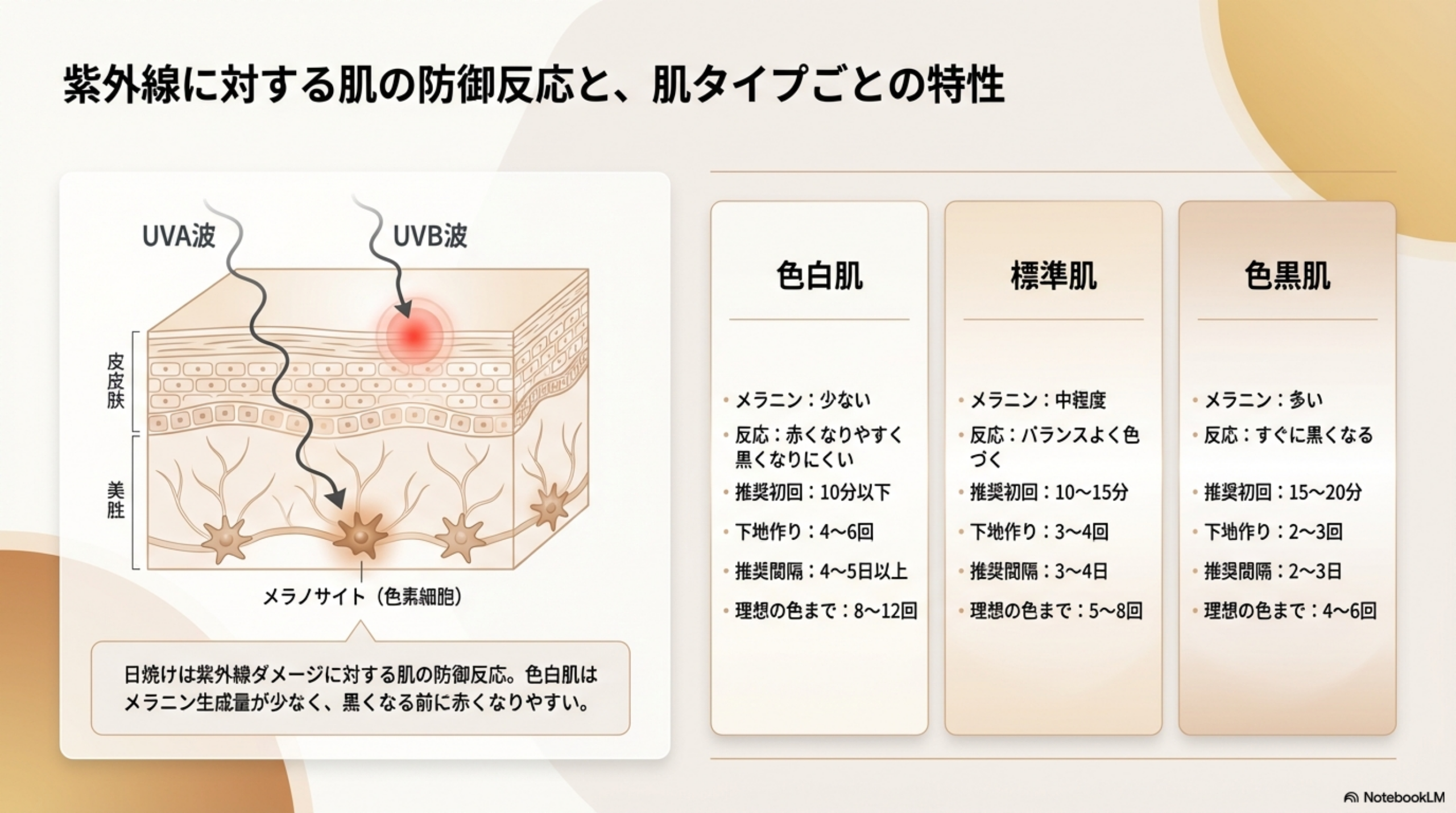 肌タイプ別の日焼け特性と必要回数の目安