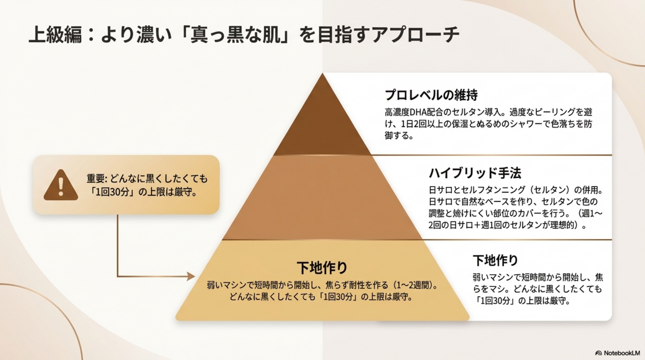 濃い小麦色を目指す段階的アプローチ