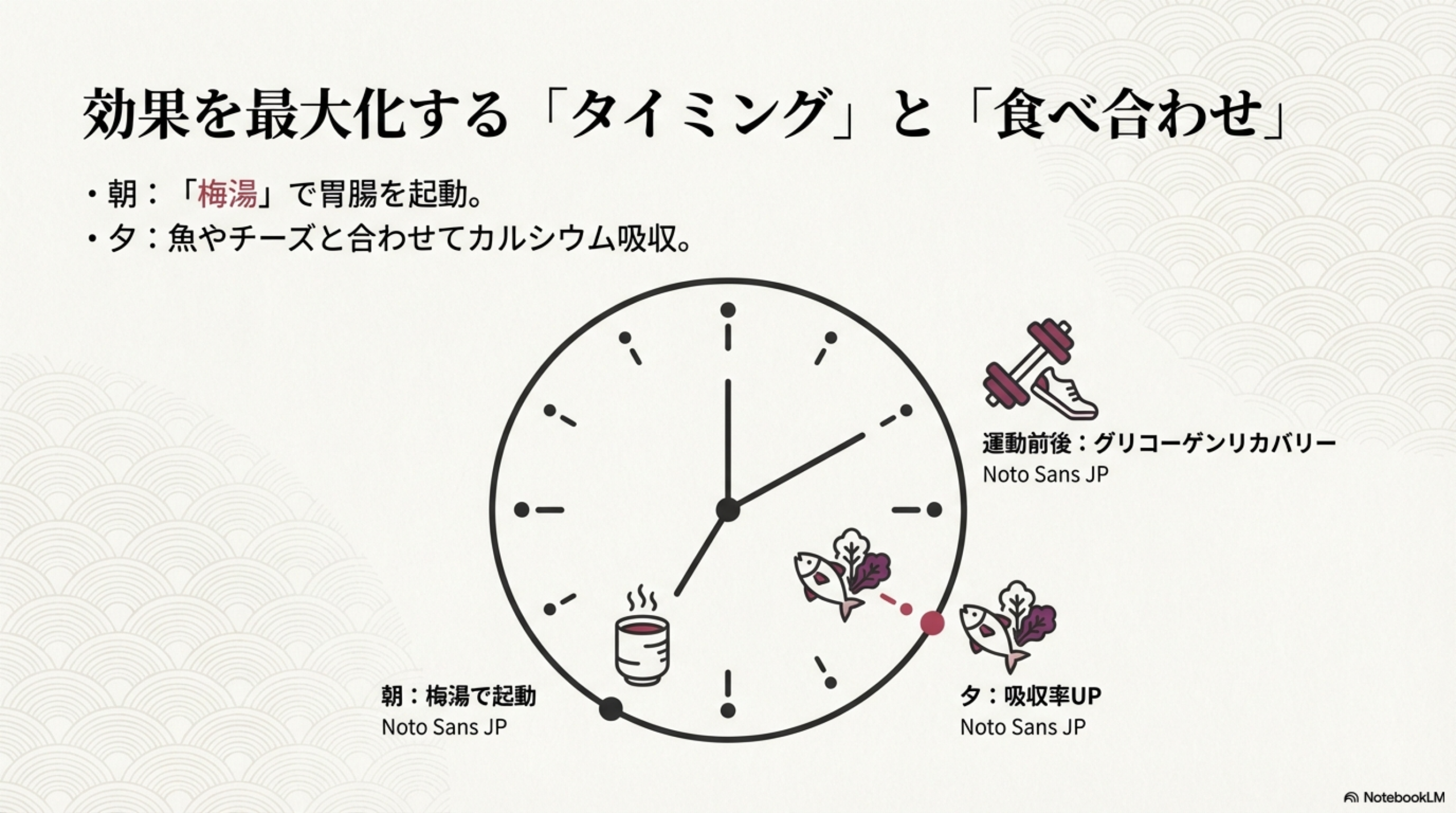 梅干しの健康効果を最大限に引き出すには、摂取タイミングや調理法、食べ合わせを工夫することが大切です。