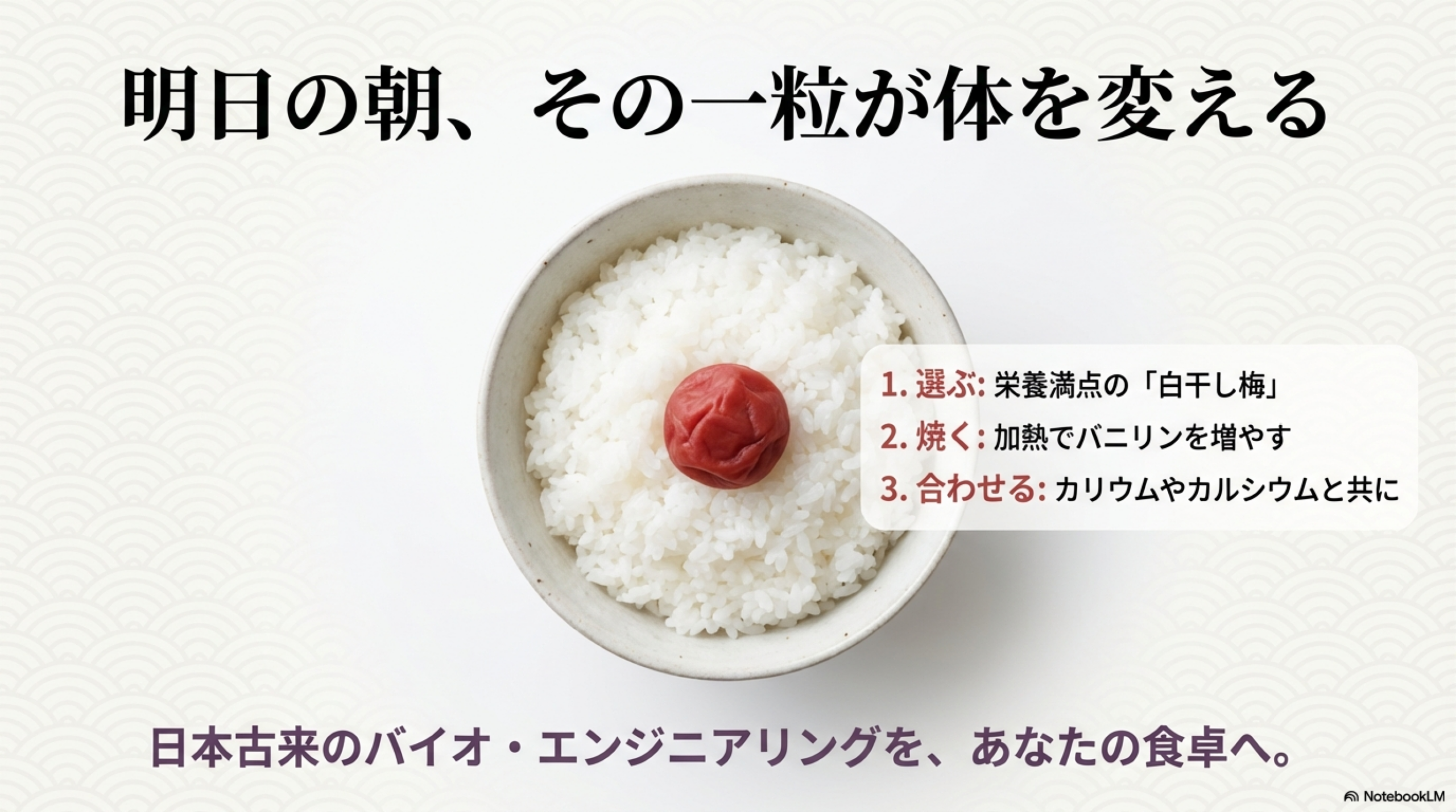 読み終えるころには、日々の食卓での梅干しの使い方が変わるはずです。結論を先に言えば、原材料が「梅、塩」だけの伝統的な梅干しを、カルシウム豊富な食材と組み合わせて食べる──この一手間が、日本人の体質に最も適した梅干しの活かし方です。