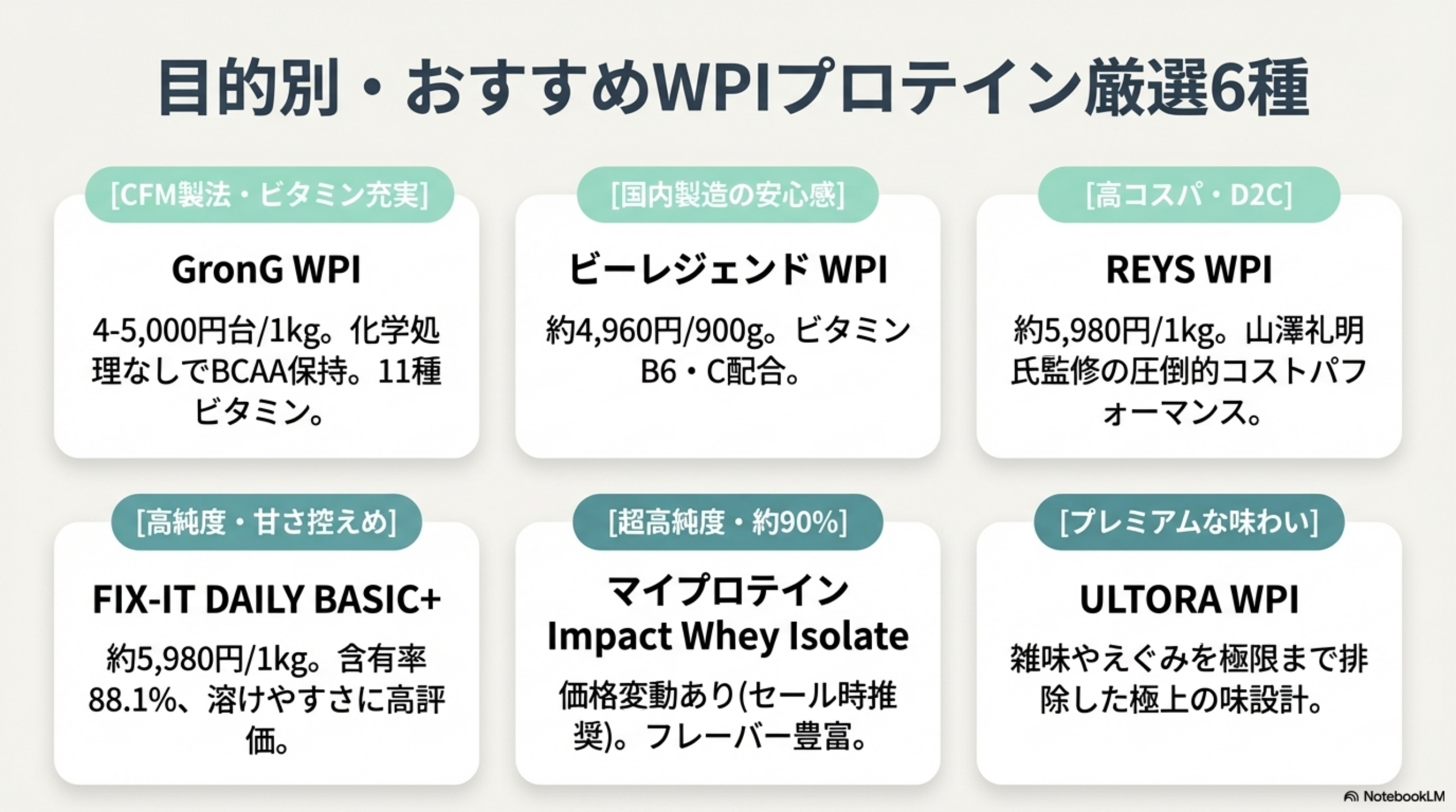 | REYS WPI | 1kg | 約5,980円 | — | D2Cモデルで高コスパ |